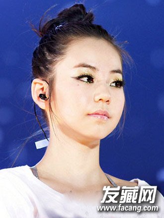 丸子头发型一向被视为很适合矮个子女生的发型,清新的扎发收拢长发发丝,干净利落,高扎发髻又很有显高的效果。