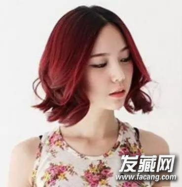 短发比直发更显能显出清爽的气质来,大侧分的酒红色短发,干净利落,气质出众。