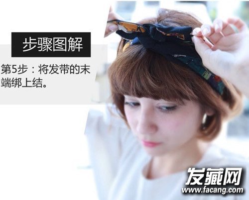 第5步:将发带的末端绑上结。