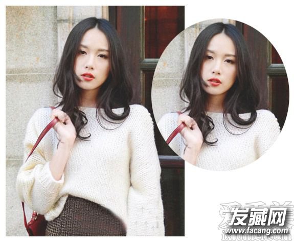 十分灵动的中长卷发发型,柔顺的发丝形成蜷曲十分灵动而且颇有淑女气质,中分的设计完美的勾勒出知性与优雅来,很显妩媚。