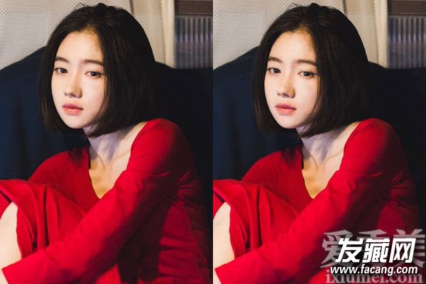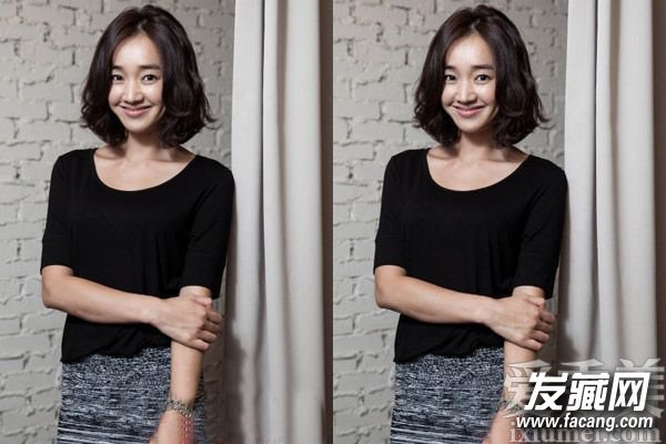 轻熟龄OL必备的一款韩式中分中短卷发发型,乌黑的蓬松短发发丝莹亮,中分短发设计很是甜美瘦脸。