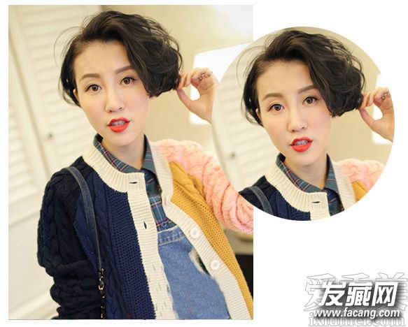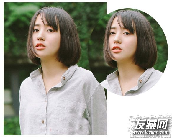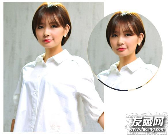 再利用的是微微偏分的斜刘海发型设计来增添小女生的温柔气质感,而与内扣形式的中短发波波头相搭同要温柔吸睛。