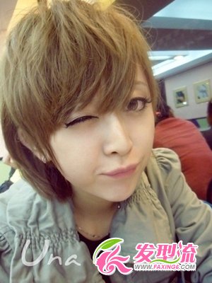 看似厚重凌乱的短烫发,充分体现出女生中性的一面。头顶丰盈的发量让造型更显饱满,刘海的修饰更能减小脸部面积。