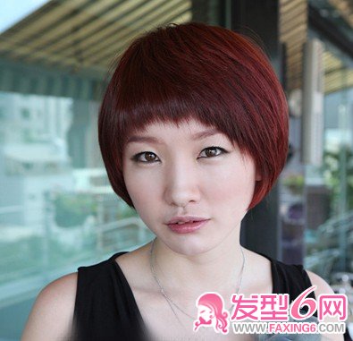短发的设计构建很简单,发型全部的重点是颜色,深色调的酒红色染发,将直顺的简单短发,打造得大方时尚起来,服顺头皮的发丝,令发型更加的率直与帅气。