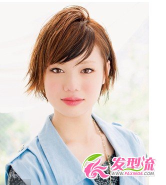 不对称方式打造的斜刘海短发展现都会女人的利落帅气,长长的刘海头发,适当的偏分,半弧形的造型设计,秀出女性的干练英气,金棕色的挑染,头顶的轻蓬松,发梢的外翘,另一边的干净处理,形成一款超抢眼的女生时尚短发。