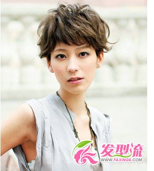 蓬松感的短发发型,覆盖式的长刘海,盖住额头有收缩脸型长度的作用,头顶的束状发丝,手指抓出蓬松效果,轻盈质感,低调的柔和发色,呈现一种优雅的时尚气息,潮流大方。