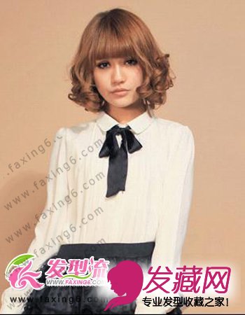 卷发的短发发型时尚又好看,有有着娇小的女人味道,齐刘海的短卷发,娇媚可人,棕色的染发增添了不少时尚感,想要打造小女人形象的美眉们,选择这款短