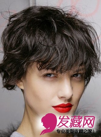 清爽的短碎发被发型师抓蓬之后有一种俏皮的凌乱感,分线不明显的短短刘海给人以率真的印象,巧克力色的染发更添活力,适合有些男孩子性格、却精致时髦的可爱女生。