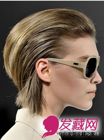 模仿欧洲嬉皮风格男式发型的背头,将短发统统向后梳,刘海和两鬓的侧发都用发蜡混合发油,梳理出发丝分明的质感和油亮的光泽。编辑强力推荐此款发型,这非常适合脸型和额头形状完美的女性,搭配大墨镜和中性衬衫、风衣,超有明星范儿!