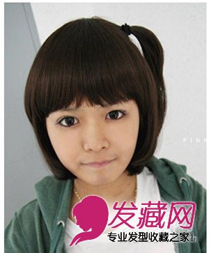 小编点评:黑黑的发色搭配白白的肤色,呈现出了强烈的对比感,同时这款发型本身就很可爱,扎一个小发尾,更显得童真。