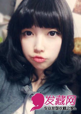 ,发尾卷翘很是可爱,配上齐刘海,减龄满分,嘟嘟着嘴,俏皮小女生。