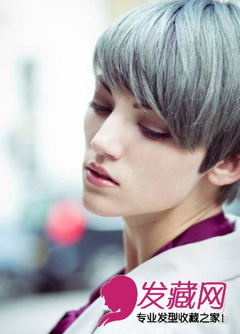 一款欧美系的女生短发发型。中性款的女生短发配上银灰色的发色。此款发型的帅气程度,连女生也要为之尖叫了。