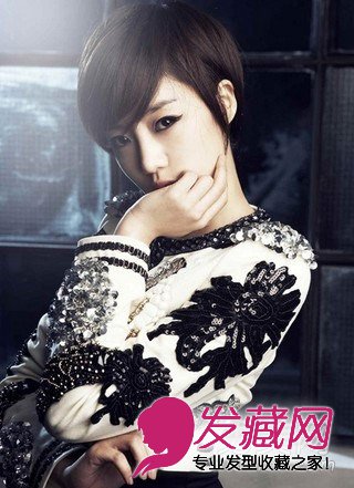 ,大片的斜刘海配上超短发发型,却有着一种媚人的性感味道。配上外挑的眼线,更是魅力十足呢。