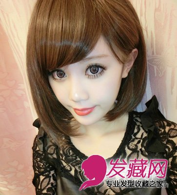 ,十分醒目哦,斜斜的刘海搭上可爱的波波头,更显青春活力。