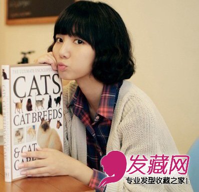齐刘海的短卷发发型 蓬松内卷的齐刘海发型