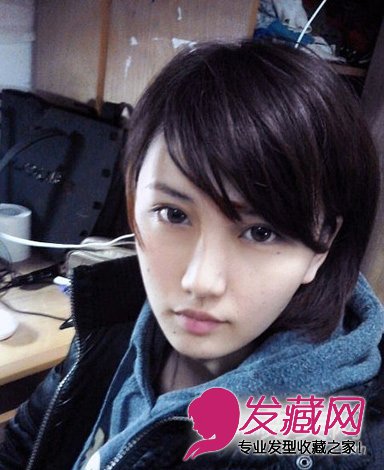 一款侧分的斜刘海的短发发型,把头发的一边放在耳后,显的非常的有女人味。深紫色的