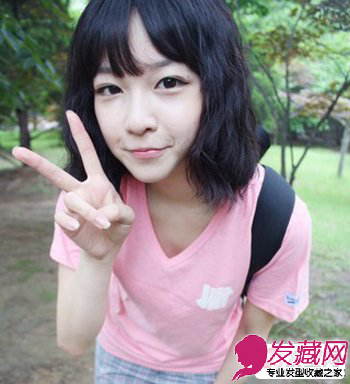 自然纯黑的短发,发尾烫成了微微的小卷,清纯中带着个性和时尚,自然的