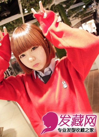 ,衬托白皙的肤色,灵动的齐刘海遮住额头更加突出萌萌的大眼睛。