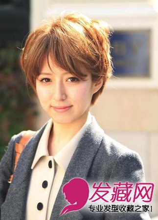 棕色的染发在阳光下闪耀着诱人的光泽,也是春夏季时尚必备的一种染发颜色。凌乱而带有蓬松感的短发非常的时尚,刘海不规则的分布,使整款发型更具有时尚的感觉。