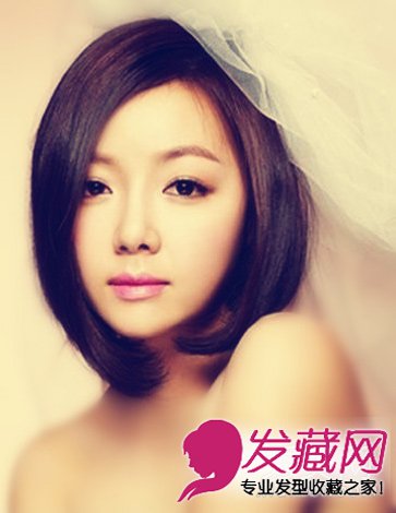 。此款发型同样也非常适合,短发新娘的发型哦!