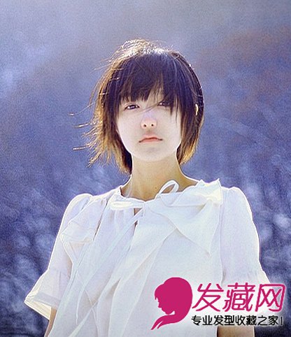 齐刘海的短发发型。这样一款清新的短发,你是不是也不自觉的被其所吸引啊!轻松的短发配上白色的连衣裙,就像精灵一样非常的仙气。