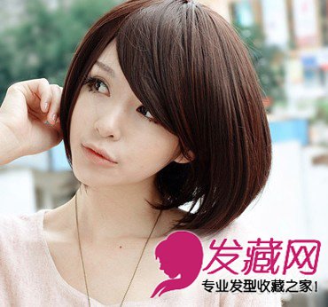 斜刘海直中短发,有点斜刘海波波头的感觉,这款发型有点淑女范的气质,选择这样的短发造型绝对是可以变成瓜子脸小女生的哦!