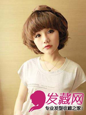 齐刘海的韩式短卷发发型 好看的短发烫发发型