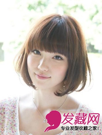 齐刘海的短发梨花烫发型。把简单的齐刘海的