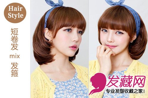发型一:短卷发mix发箍