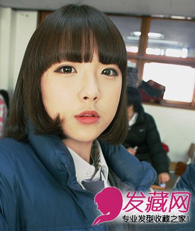 ,自然的发色很显清纯,搭配齐刘海修颜清新,可爱的校园女生发型。