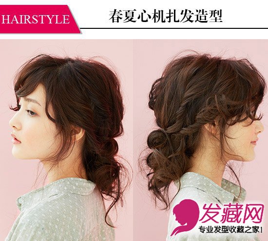 发型点评:这款扎发最重要的在于将发束打造出蓬松质感。将长发扭转后盘成蓬松的低发,凌乱的发束彰显出性感与时尚感。