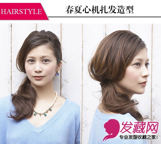 发型点评:侧边马尾用手拉扯蓬松,慵懒的卷发马尾散发出优雅气质。