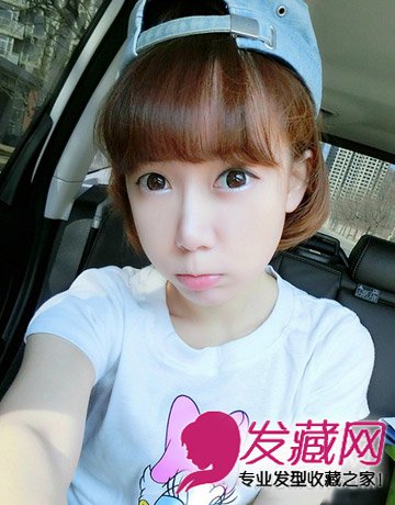 呆萌感的一款蘑菇头短发,圆脸妞,无辜的大眼睛,内扣的发尾从刘海到发丝,俏皮可人,休闲穿搭少女范尽显。