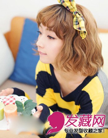 ,搭配黄格子的蝴蝶结发箍和黄黑条纹体恤,娇俏的小清新范十足。