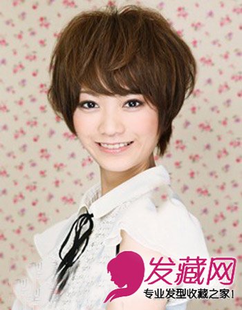 这款齐刘海的蓬松短发,修饰女生娇俏脸蛋,很适合学生妹子哦。