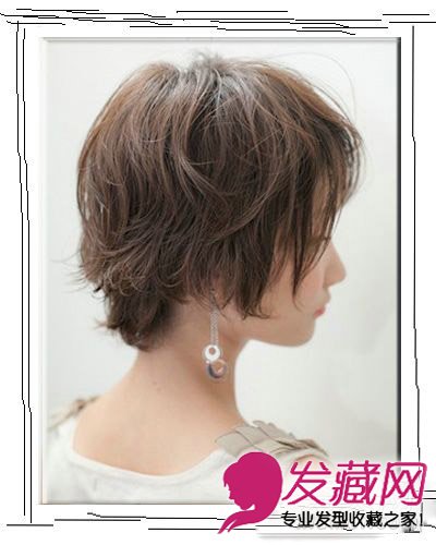 小编点评:这款短发的侧面也有些凌乱的感觉,波浪烫发让整款发型仿佛有了生命力。层次修剪同样非常有设计感。