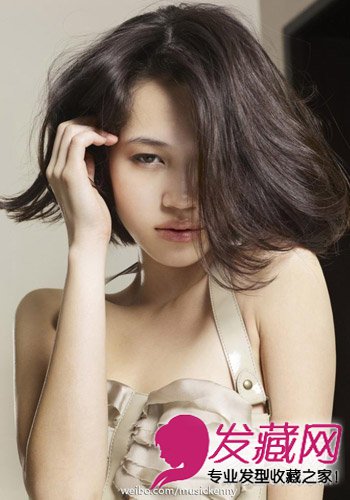 充满空气感的短BOB随性的遮住半边脸颊,模糊的发际线,轻轻柔柔的蓬松质感,让整个