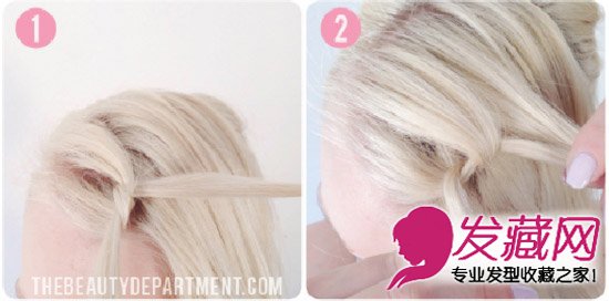 Step1:拿取第一蔟刘海,将其分成两份,交叉打松结。