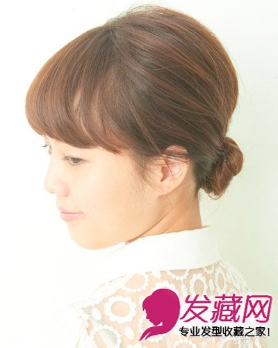 除了将花苞头放在后脑勺的中间位置,还可以随意移动哦,也同样好看。这款是低丸子头。
