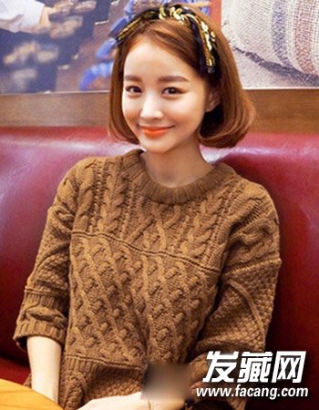 是不是特别的迷人呢?只是简单的将中短发进行微微的偏发设计,而配合的内扣式的发梢造型与温暖的棕黄色染发更显冬季可爱时尚风,一个简单的蝴蝶结发箍更是减龄必备的发饰。