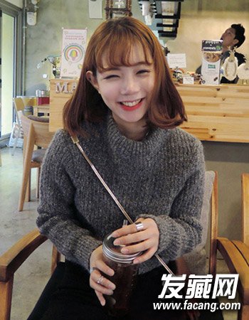 最后是一款简单的女生中短发发型,这种比较常见但也百搭修颜式的中短发选项妹纸样不防谎,温暖的棕色染发与梨花烫形式的内扣式发梢造型,再与清新的空气感刘海相搭更晶粒小女生的甜美可爱感。