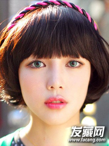 清新俏皮的韩式齐刘海短发,内蓬效果的短发更显蓬松有型,齐耳短发微微内扣的发丝瘦脸,打造出精致的巴掌脸。