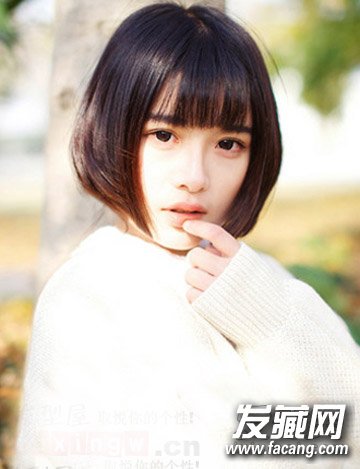 小清新范十足的齐刘海短发,充满少女的萌动感,非常适合学生妹,柔顺的发丝修剪出弧度,可爱清爽,刘海也是薄薄的贴在额头上,凸显出一双无辜的大眼睛。
