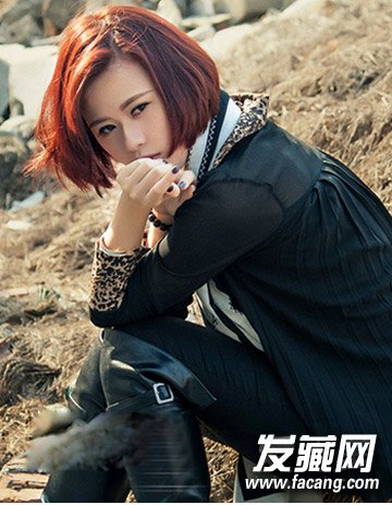 这款造型颇有个性,所以比较适合一些性格开朗的女生,抢眼的红棕色发色显露出御姐范来。颇有个性。