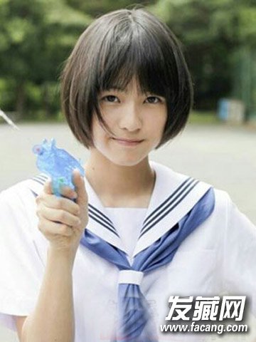 适合小清新尝试的一款短发发型,侧分的日系风短发波波头,蓬松的发丝飘逸,搭配校服造型很有清纯气质。