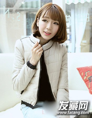 的妹纸们不防来看看这款简单的女生魅力短卷发发型,清新的斜刘海造型设计,再与时尚的咖啡色染发相搭,简单的发梢内扣式烫发设计更显女生的可爱甜美风。