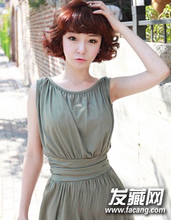 最后是一款活泼可爱感十足的女生魅力中短发卷发发型,厚重的齐刘海可胆最显女生的可爱感的,而配合类似于绵羊烫形式的中短发卷发设计更显一丝俏皮感。