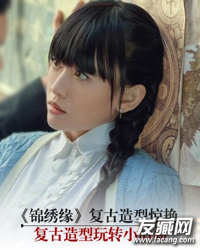 陈乔恩这款侧边编发发型极显少女气质,浅蓝色毛衣搭配齐刘海编发,甜美减龄。
