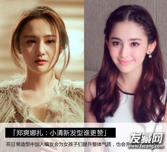 张爽则将刘海垂顺、露额发型很清爽,中分扎发发型搭配发箍,简约低调中展现优雅气质。