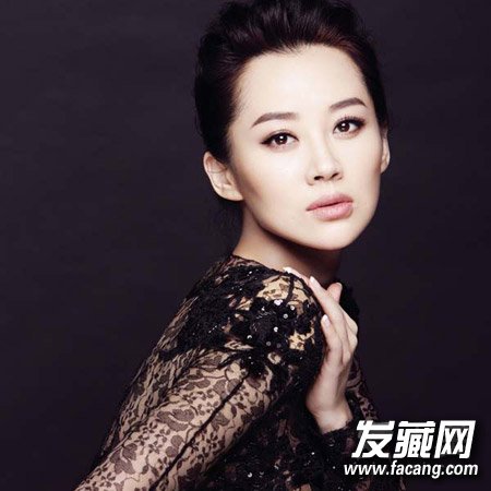 头发后梳盘起,做无刘海设计,凸显精致五官,自信美丽。